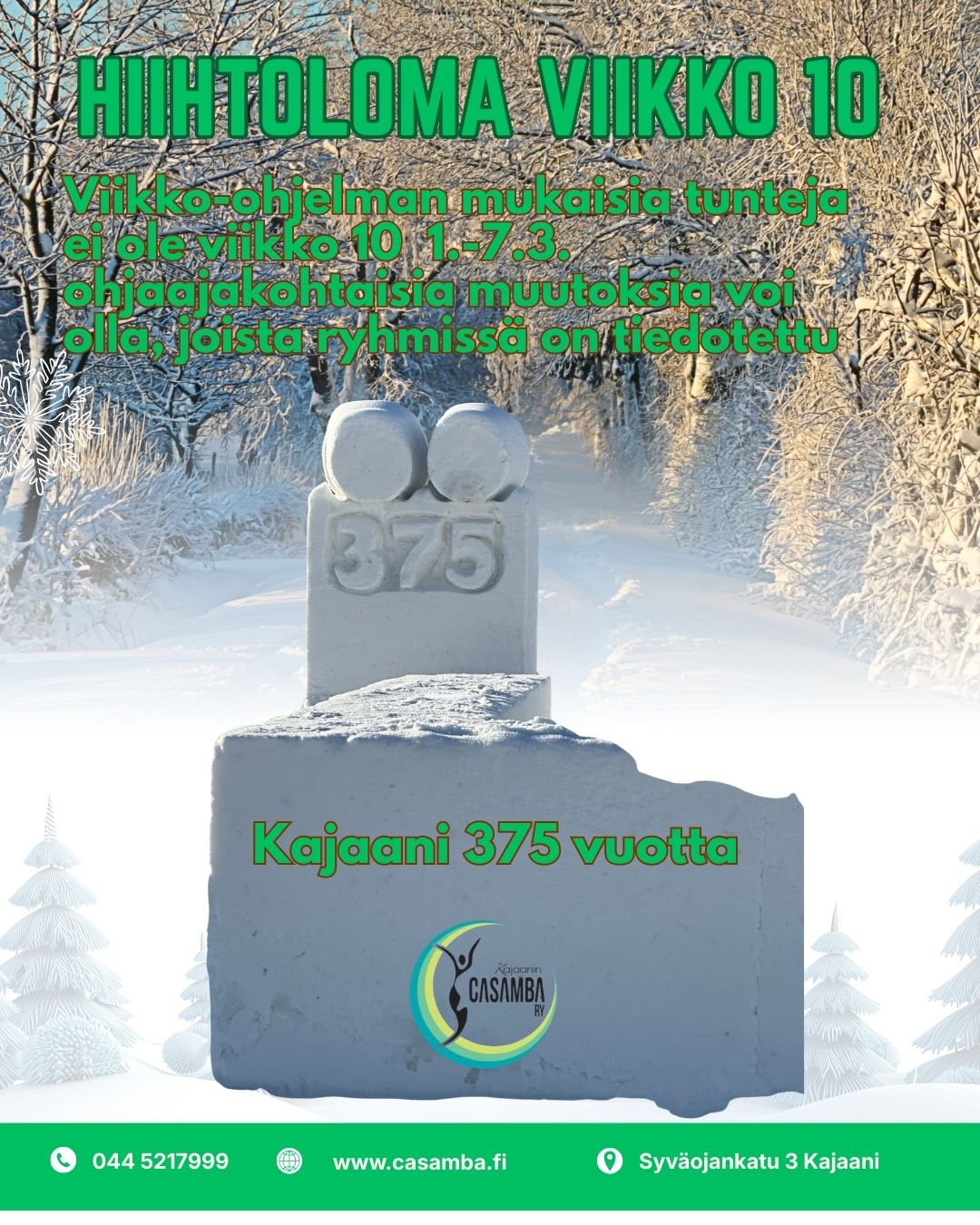 Tanssiurheiluseura Kajaanin Casamba ry Kajaanissa (375 vuotta vuonna 2026) viettää talvilomaviikkoa vko 10 2.-7.3. Jotain tanssikurssin ”poikasta” on tarjolla, Muutoin ollaan ihan lomalla ☀️ #loma #kajaani #kajaani375vuotta #kainuu #hyväelämä #luontolähellä #helppoaarkea #tanssiseura #tanssi #tähtiseura #suomisport Liitteet